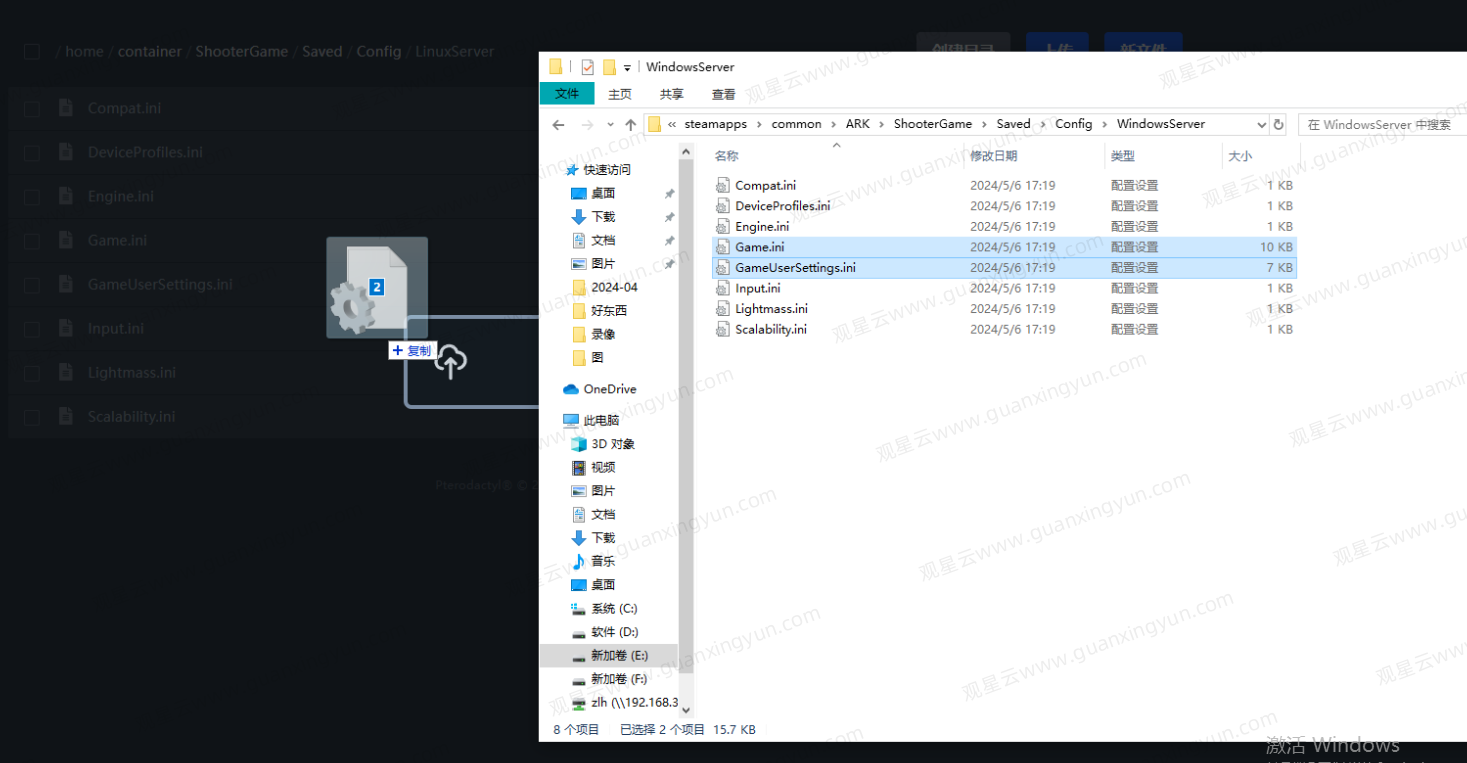 路径:\SteamLibrary\steamapps\common\ARK\ShooterGame\Saved\Config\WindowsServer