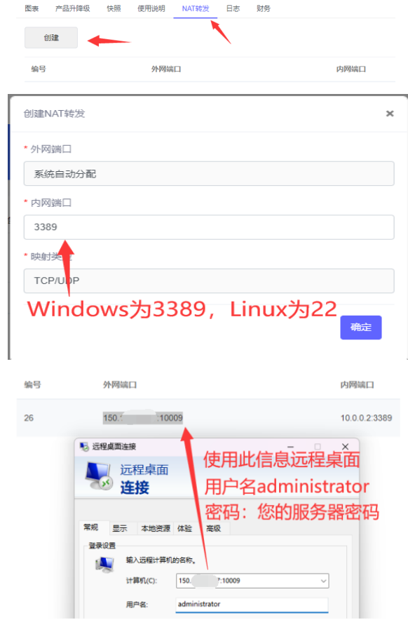如何使用云电脑:通过nat转发实现一机多连,看图。在获得外网ip+端口即可连接