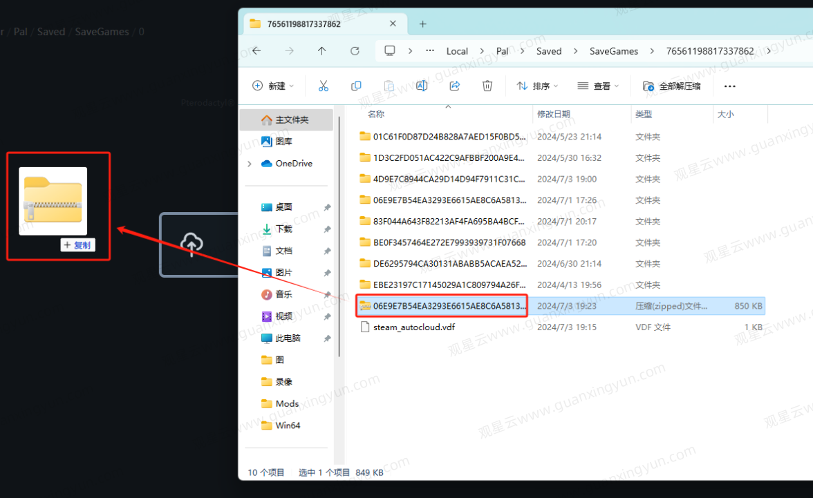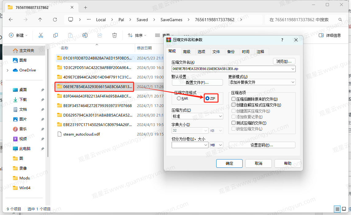 回退一步之后,将刚刚的存档文件夹压缩成zip格式的压缩包