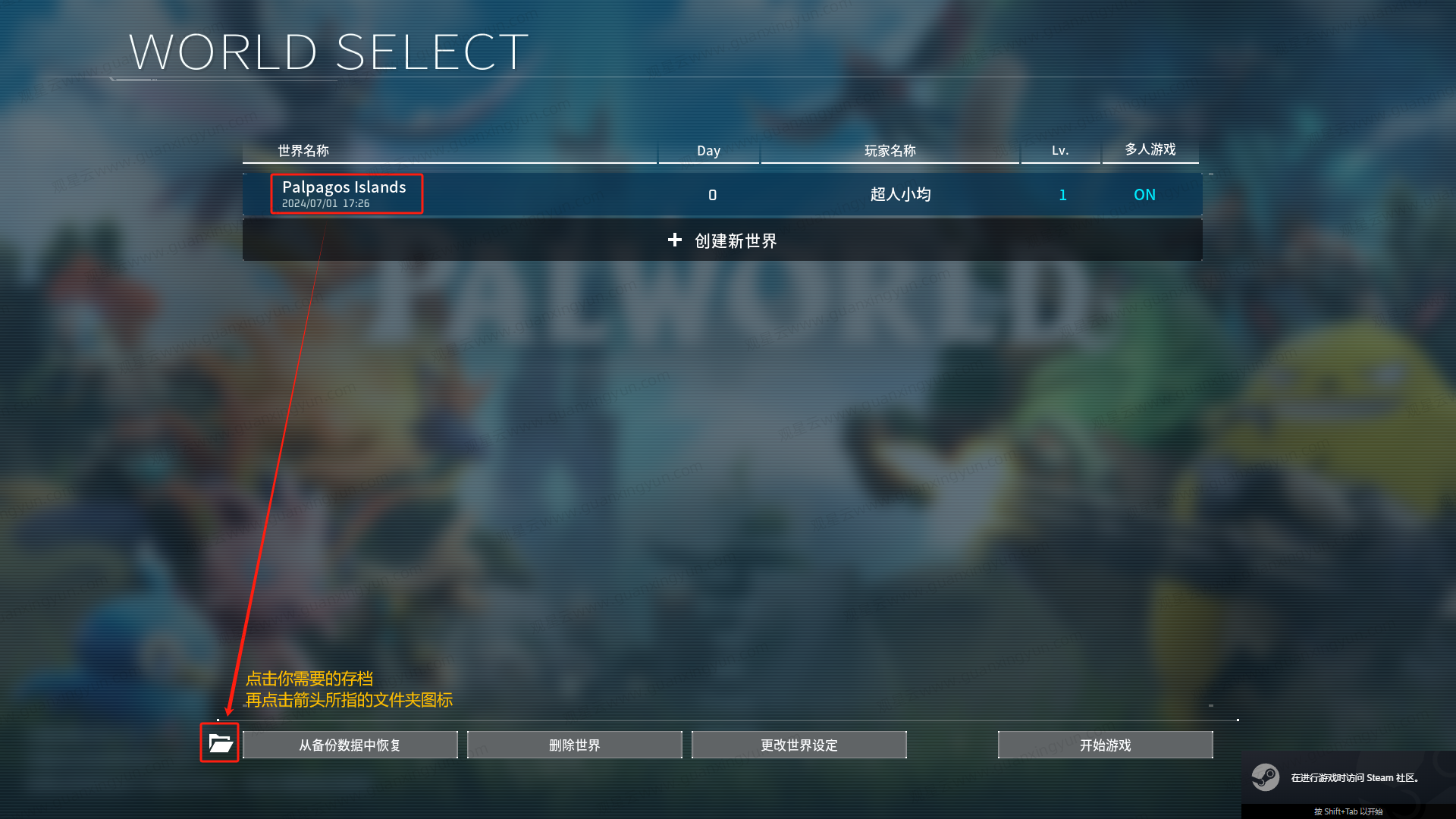 点击一次你的需要的存档➡点击文件夹图标,如下图👇